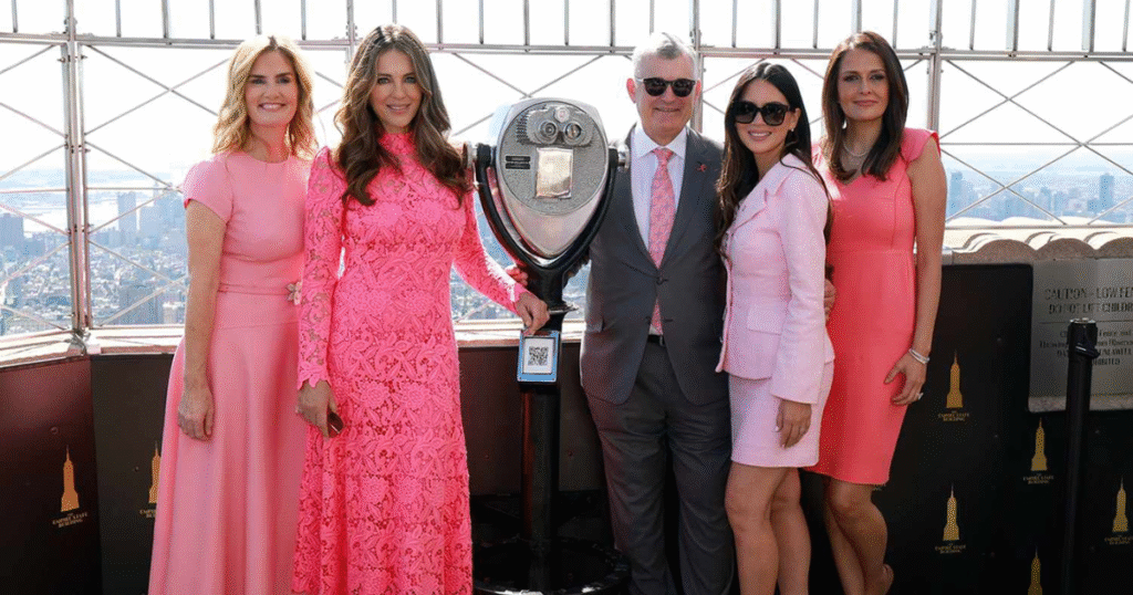 Elizabeth Hurley, a icônica atriz e modelo britânica, iluminou o Empire State Building em Nova York com a cor rosa, marcando o início do Mês de Conscientização sobre o Câncer de Mama. O evento emocionante também celebrou seus 30 anos como Embaixadora Global da Campanha de Câncer de Mama da Estée Lauder Companies.