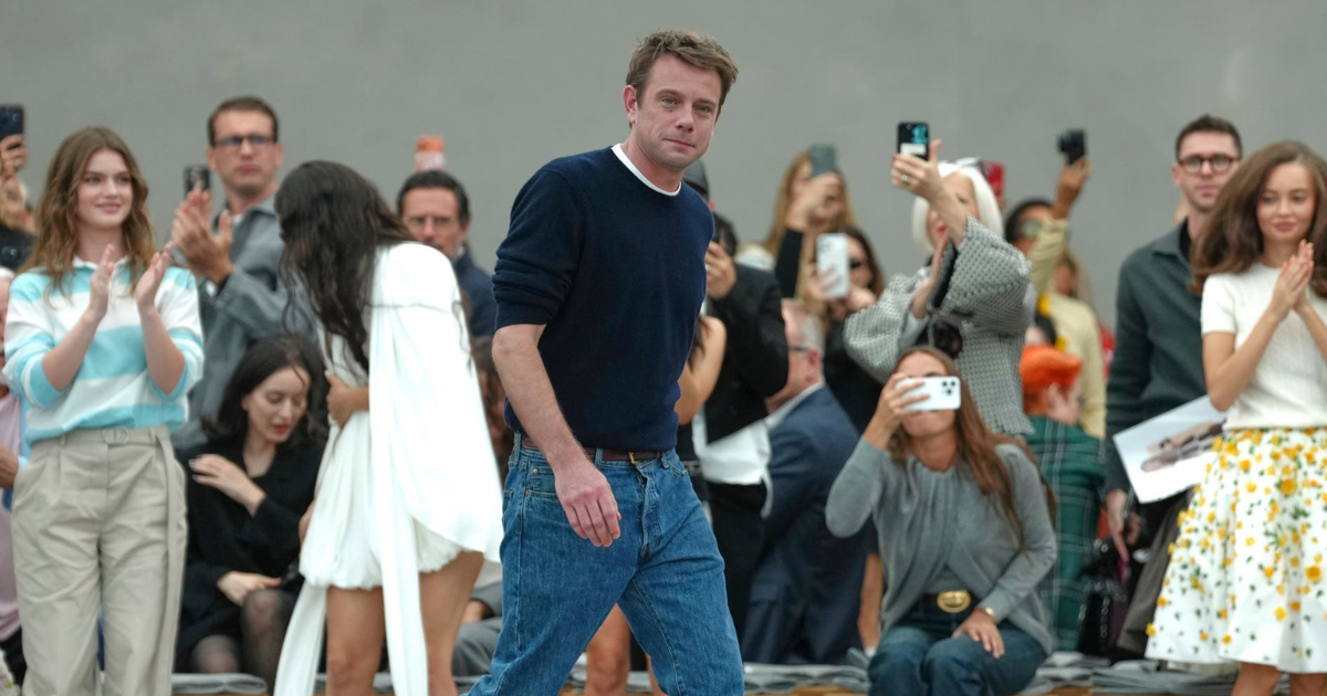 Mas Anderson não parou por aí. Ele trouxe elementos teatrais de tirar o fôlego: laços oversized que parecem esculturas, drapeados em forma de abajur que desafiam a gravidade, e uma mistura perfeita entre o histórico e o contemporâneo. Ao mesmo tempo, a coleção também incluiu peças comercialmente acessíveis, como minissaias jeans, provando que Anderson entende tanto de alta-costura quanto de prêt-à-porter.