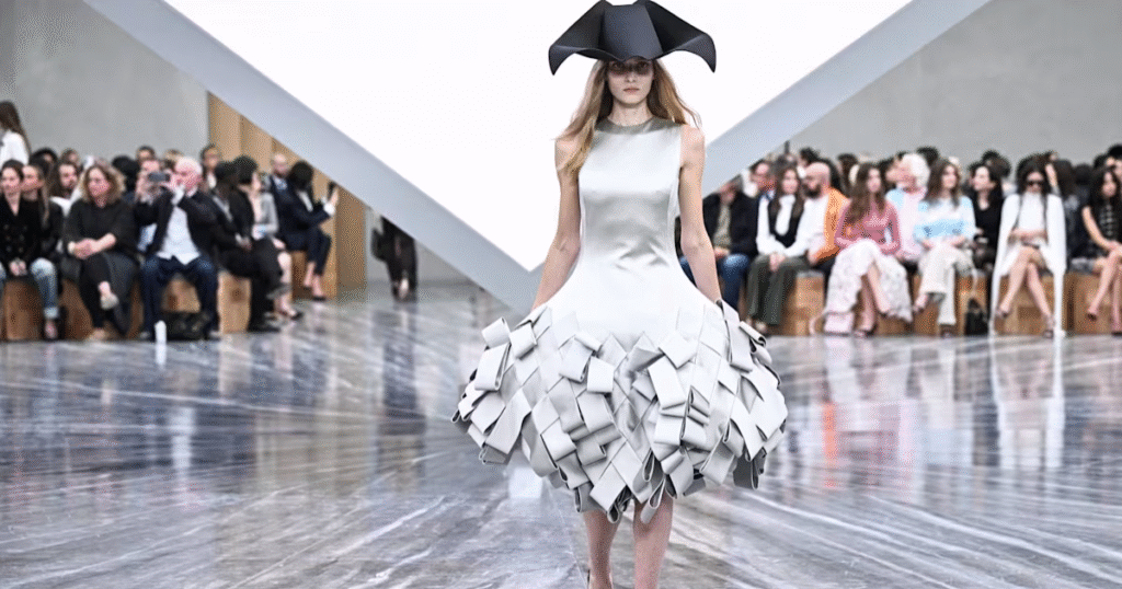 O conceito por trás da coleção é fascinante: Anderson buscou “decodificar e recodificar” a linguagem da Dior para uma nova era. Isso significa honrar o passado glorioso da marca — aquela elegância francesa do século 18, os volumes dramáticos, a feminilidade exuberante — mas traduzir tudo isso para o vocabulário de 2025.