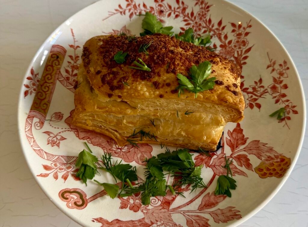 Na sequência, os Folhados de Presunto e Ervas “Hamnet” celebram o longa sobre a família de Shakespeare. Usando massa folhada all-butter, presunto cozido e uma mistura de ervas silvestres (salsinha, tomilho e cebolinha), esses pastéis tornam-se uma metáfora gastronômica: a rede da massa envolve os ingredientes como a trama do filme envolve o espectador.