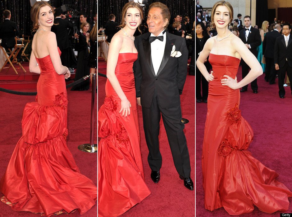 O look de alta-costura usado por Anne Hathaway em 2011, quando desfilou acompanhada pelo próprio mestre.